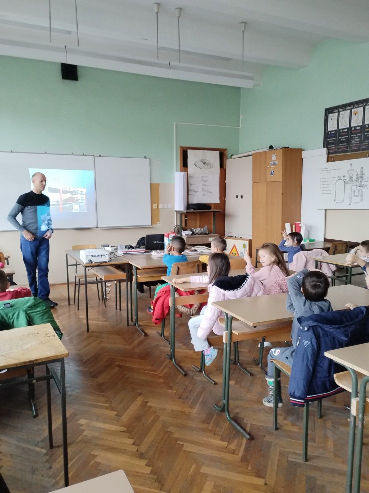 7. новембар 2025.Нашу школу посетила је вртићка група ,,Жирафице“ из предшколске установе ,,Веверица“ како би се упознала са темом ваздухопловног саобраћаја. За малишане је припремљено кратко, занимљиво и узрасту прилагођено предавање које је одржао наставник саобраћајних предмета, уз подршку педагога и наставнице енглеског језика.